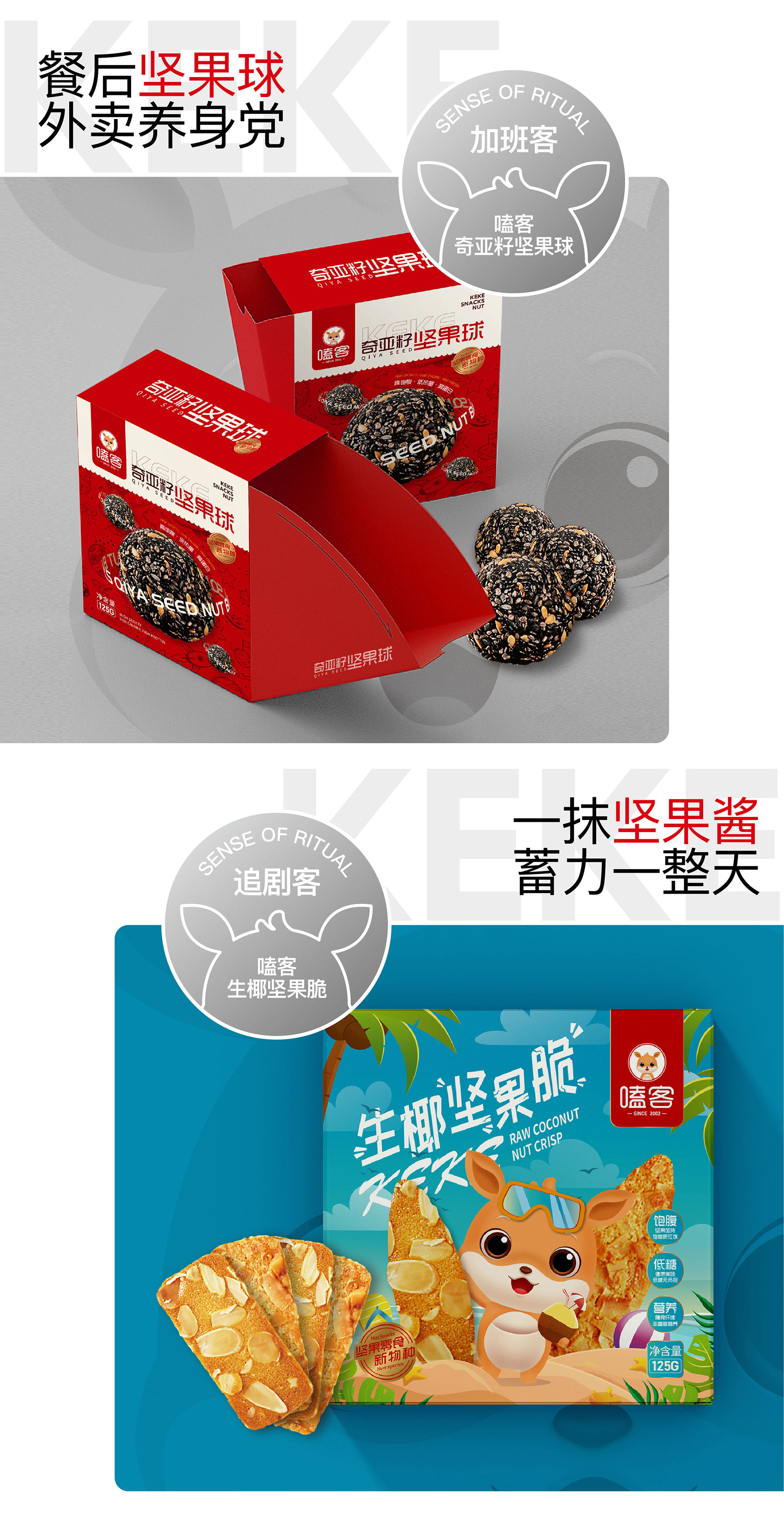 2022年,嗑客食品与今睿进行战略合作,从品牌的产品线规划,爆款产品的打造,企业文化的定位,以及商业模式的更新,企业VIS的升级设计等全方位,立体化的品牌战略升级。